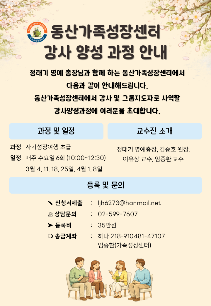 동산가족성장센터 강사양성과정 안내