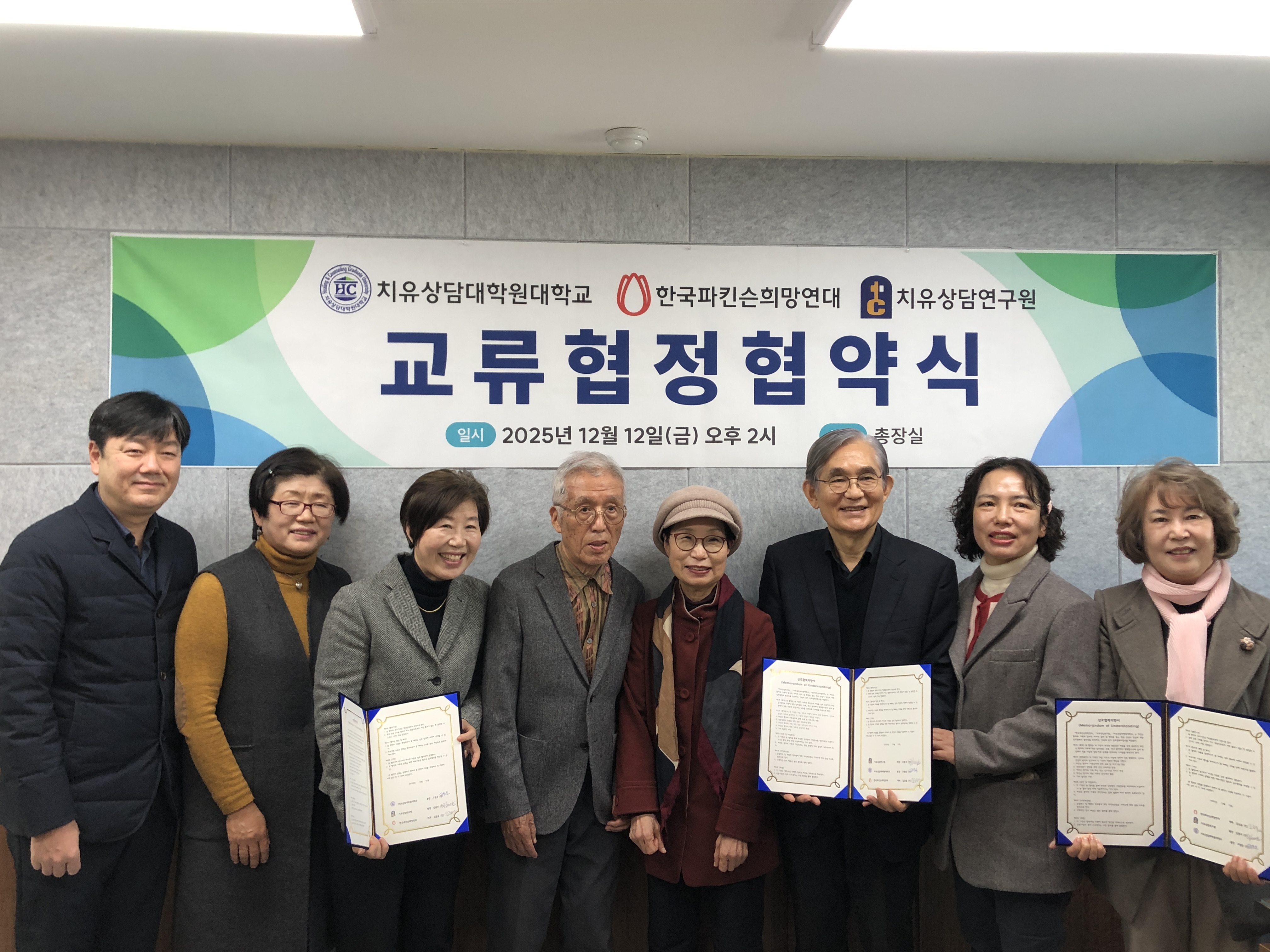한국파파킨슨희망연대와 치유상담연구원 협약식, 2025. 12. 12(금) 오후2시